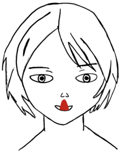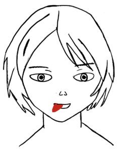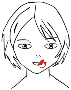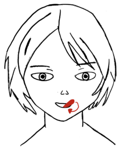 Devant le miroir, il faut suivre le tour des lèvres avec l’apex lingual en veillant à bien aller sur la commission des lèvres.