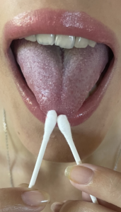 10/ Tu peux Stimuler les muscles latéraux qui te permettent de resserrer ta langue en pointe et guider latéralement ta langue avec des cotons tiges ou la tranche de 2 abaisses-langue en allant progressivement vers la pointe de la langue pour l’aider a se resserrer.